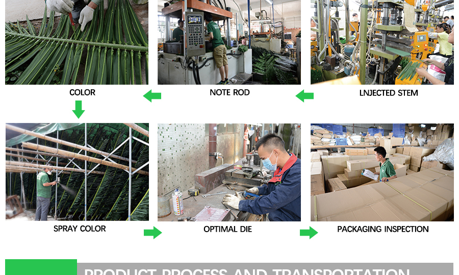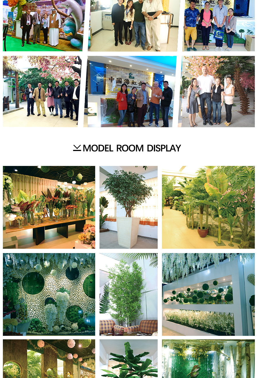 Material | 1).Leave: fabric, PE can be anti-UV plastic, or fire-retardant foliage 3).Base: Our standard base is a plastic pot or steel plate |