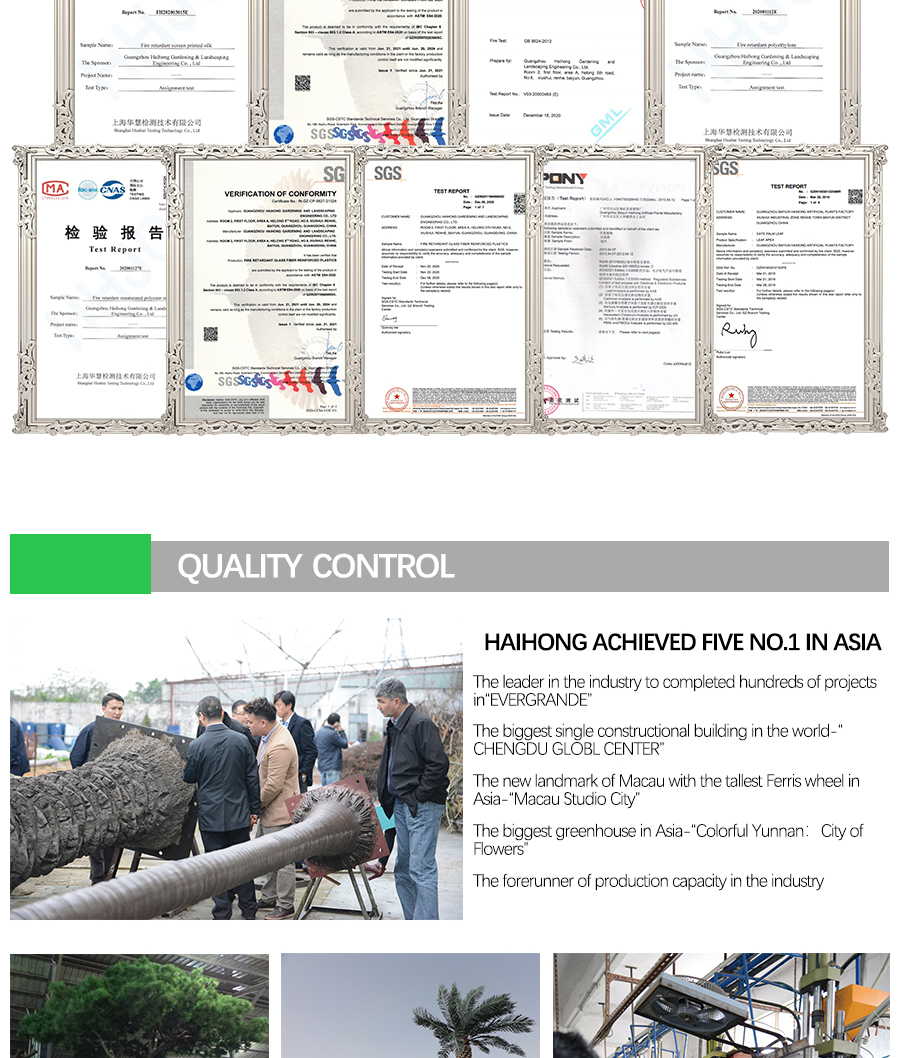 Advantages | 1).High imitation which looks like the real 2).Strong resistance of UV, wind, frost, rain, snow and decay 3).Super power of anti-aging and anti-fading 4).Easy to care 5).Promptly delivery 6).No harm to human and environment |